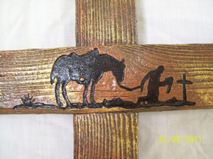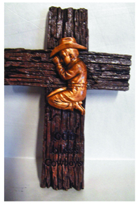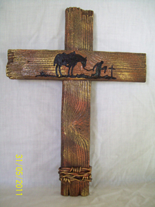 ![]() ![]() ![]() ![]() (#96) Cross, Cowboy Praying and Horse (Olive wood cross comes from Jerusalem.)(8"x13") |